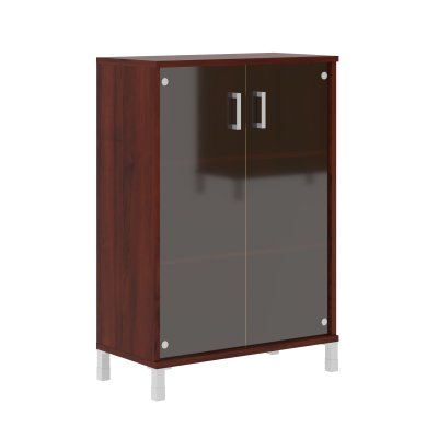 Широкий средний шкаф BORN для офисного или домашнего использования. Размеры - 900х1286х450 мм, цвет - Бургунди. Двустворчатый шкаф оснащенный 3 просторными полочками, которые закрываются стеклянными дверцами. На дверцах установлены стильные металлические ручки. Конструкция оснащена прочными силовыми креплениями – эксцентриковыми стяжками. Все торцы основных элементов надежно защищены кромкой ПВХ – 2 мм. Регулируемые по высоте опоры обеспечат шкафу устойчивость на неровном полу.