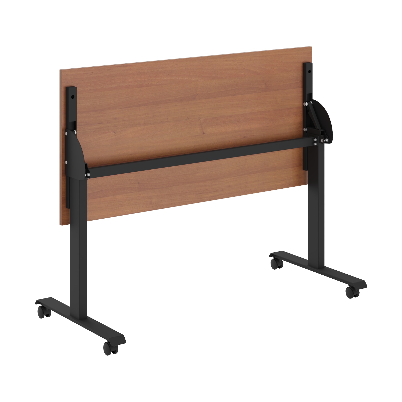 Столешница из ЛДСП т.22мм, кромка ПВХ т. 2мм по периметру, без кабель-каналов. Металлокаркас из двух Т-образных опор на колесах со стоппером, сечением 80х40мм и толщиной металла 2 мм. Подвижная часть стола включает в себя две направляющие из трубы 40х25мм с рычагами для фиксации столешницы с каждой из сторон. Размеры одного стола в сложенном состоянии: 1350/1550х644,5х1100мм. При составлении нескольких столов каждый стол добавляет 135 мм к глубине и 80 мм к длине.