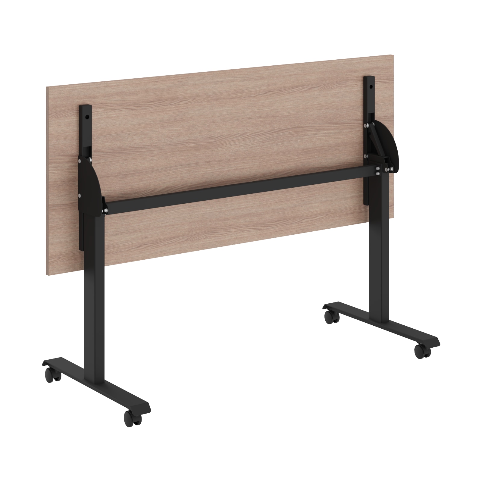 Столешница из ЛДСП т.22мм, кромка ПВХ т. 2мм по периметру, без кабель-каналов. Металлокаркас из двух Т-образных опор на колесах со стоппером, сечением 80х40мм и толщиной металла 2 мм. Подвижная часть стола включает в себя две направляющие из трубы 40х25мм с рычагами для фиксации столешницы с каждой из сторон. Размеры одного стола в сложенном состоянии: 1350/1550х644,5х1100мм. При составлении нескольких столов каждый стол добавляет 135 мм к глубине и 80 мм к длине.