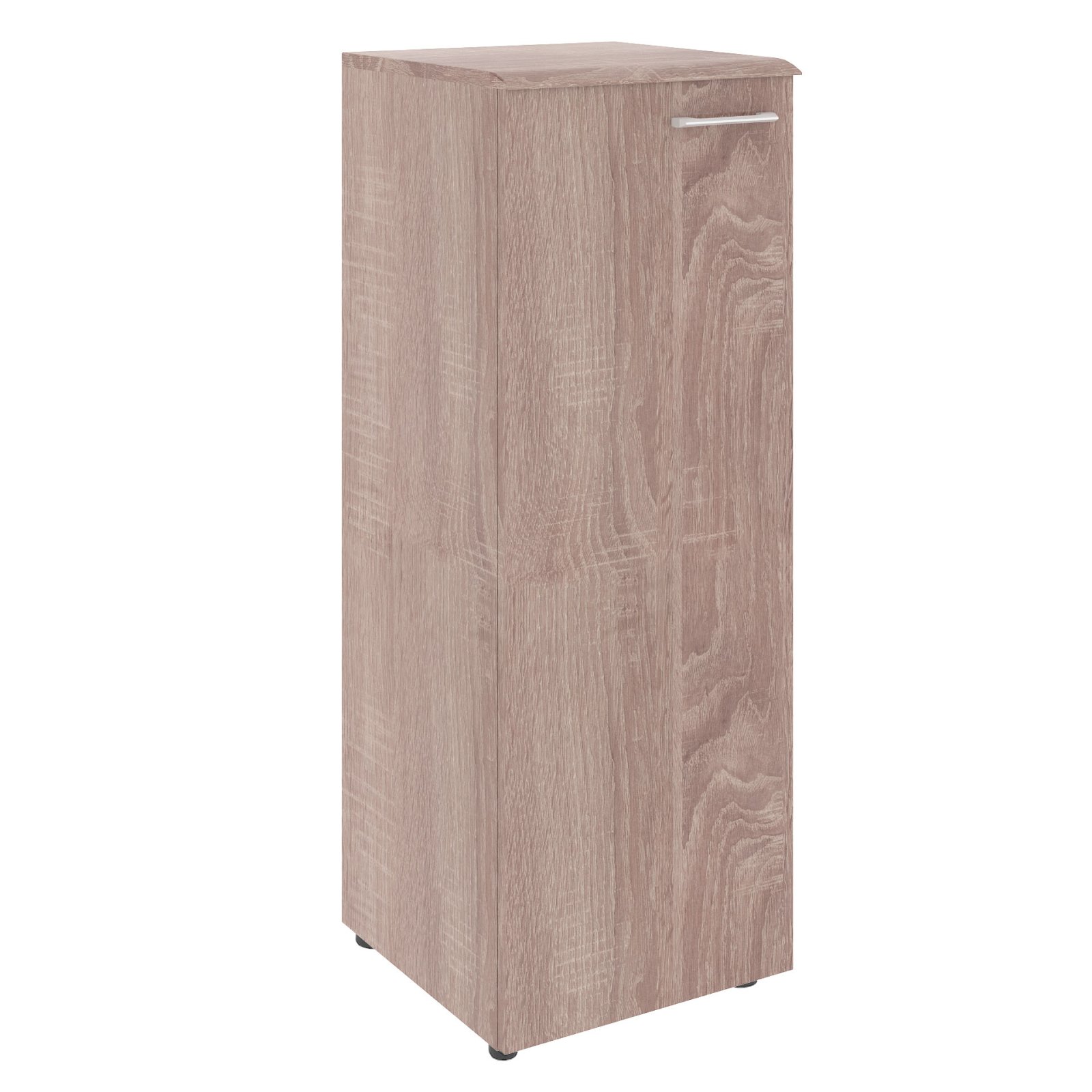 Универсальный шкаф средний WAVE для офисного или домашнего использования. Размеры - 432х1184х432 мм, цвет - Дуб Сонома. Шкаф имеет солидный топ из МДФ – 19 мм. Оснащен 3 полками, которые закрыты дверцей из ЛДСП под цвет шкафа. На дверце установлена долговечная и стильная металлическая ручка. Конструкция шкафа оснащена прочными силовыми креплениями – эксцентриковыми стяжками. Регулируемые по высоте опоры обеспечат шкафу устойчивость на неровном полу.