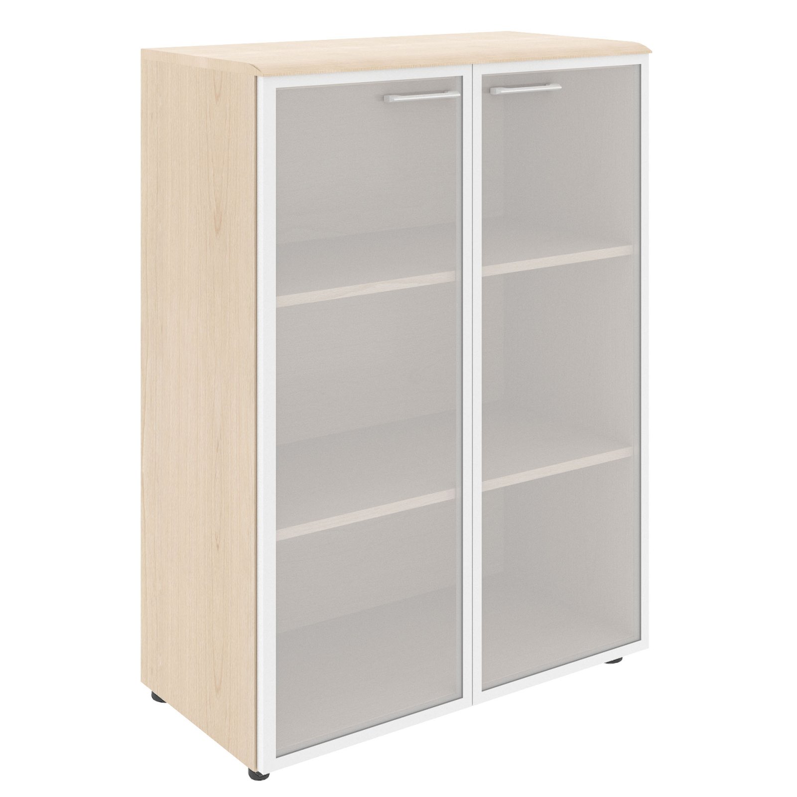 Широкий шкаф средний WAVE для офисного или домашнего использования. Размеры - 856х1184х432 мм, цвет - Бук Тиара. Шкаф имеет солидный топ из МДФ – 19 мм. Двустворчатый шкаф оснащенный 3 просторными полками, которые закрыты стеклянными дверцами со стильной матовой тонировкой в металлической рамке. На дверцах установлены долговечные и стильные металлические ручки. Конструкция шкафа оснащена прочными силовыми креплениями – эксцентриковыми стяжками. Регулируемые по высоте опоры обеспечат шкафу устойчивость на неровном полу.