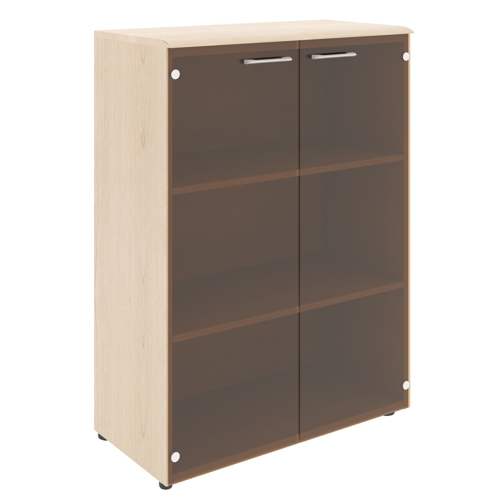 Широкий шкаф средний WAVE для офисного или домашнего использования. Размеры - 856х1184х432 мм, цвет - Бук Тиара. Шкаф имеет солидный топ из МДФ – 19 мм. Двустворчатый шкаф оснащенный 3 просторными полками, которые закрыты стеклянными дверцами. На дверцах установлены долговечные и стильные металлические ручки. Конструкция шкафа оснащена прочными силовыми креплениями – эксцентриковыми стяжками. Регулируемые по высоте опоры обеспечат шкафу устойчивость на неровном полу.