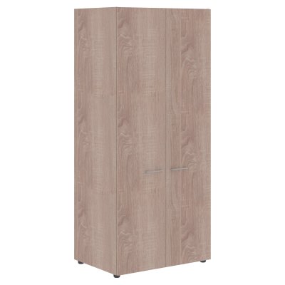 Широкий и глубокий гардероб XTEN для офисного или домашнего использования. Размеры - 856х1955х600 мм, цвет - Дуб Сонома. Двустворчатый гардероб, закрывающийся на дверцы из ЛДСП под цвет конструкции. На дверцах установлены долговечные и стильные металлические ручки. Гардероб оснащен 2 полочками, которые расположены сверху и снизу, и продольной штангой. Конструкция гардероба оснащена прочными силовыми креплениями – эксцентриковыми стяжками. Регулируемые по высоте опоры обеспечат гардеробу устойчивость на неровном полу.