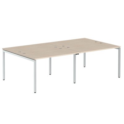 Рабочая станция XTEN-S на 2 рабочих места, размер - 2400х1400х750 мм, цвет – Бук Тиара, цвет опор – Алюминий Матовый. Оснащена устойчивым и долговечным металлокаркасом типа BENCH из двух П-образных опор, которые прочно соединены между собой металлической траверсой. Металлокаркас имеет специальные проставки между столешницей и опорами, что создает эффект «парящей столешницы». Солидная и прочная столешница 25 мм. Надежная защита торцов всех элементов - кромка ПВХ 2 мм. Регулируемые опоры обеспечат столу устойчивость на неровном полу.